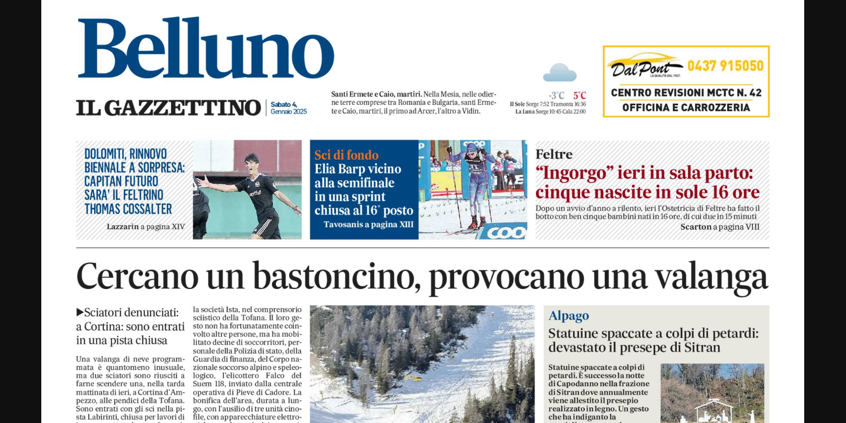 Saranno denunciati gli sciatori che hanno provocato la valanga a Cortina. La Rassegna di sabato 4 gennaio ►Video