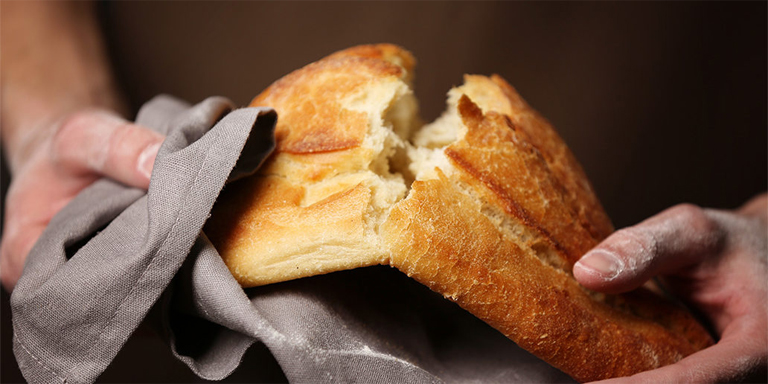 «Gesù prese i cinque pani e i due pesci, alzò gli occhi al cielo, recitò su di essi la benedizione, li spezzò e li dava ai discepoli perché li distribuissero alla folla» (Luca 9,17).