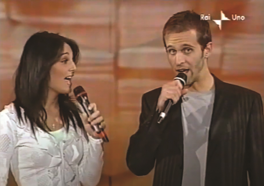 Federico Stragà canta «Volere volare» con Anna Tatangelo, a Sanremo 2003.