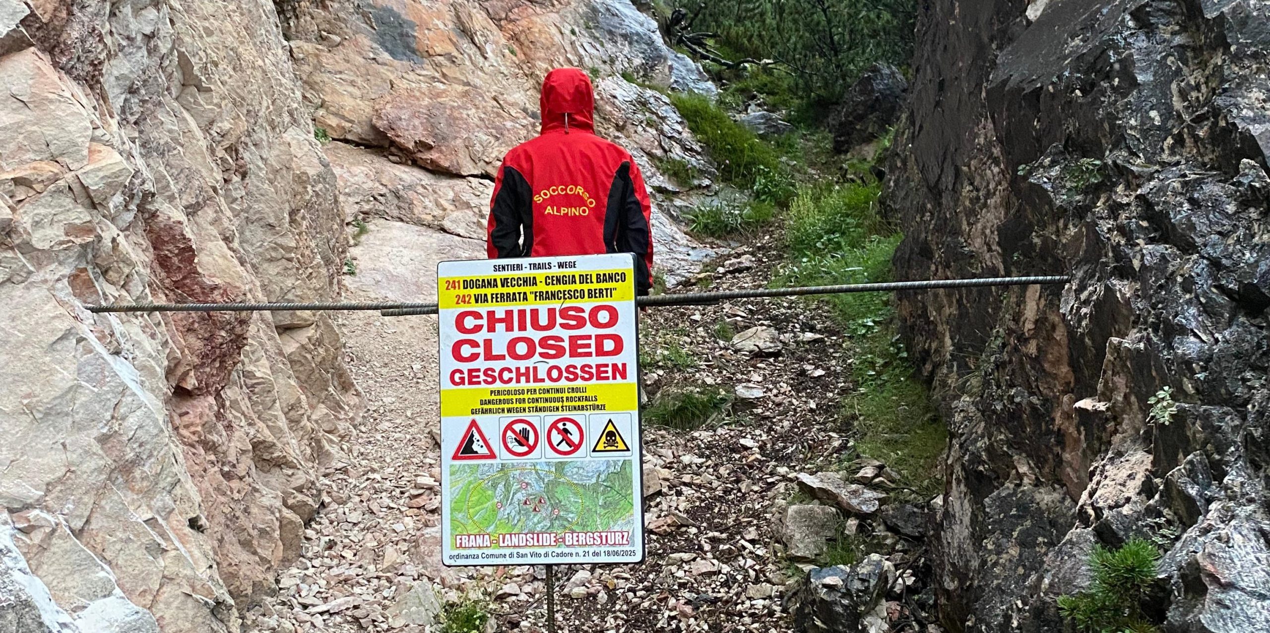 Chiusi entrambi gli accessi al sentiero 242, che conduce alla ferrata Berti, perché il tratto rimane instabile, con frequenti cadute di materiale roccioso.