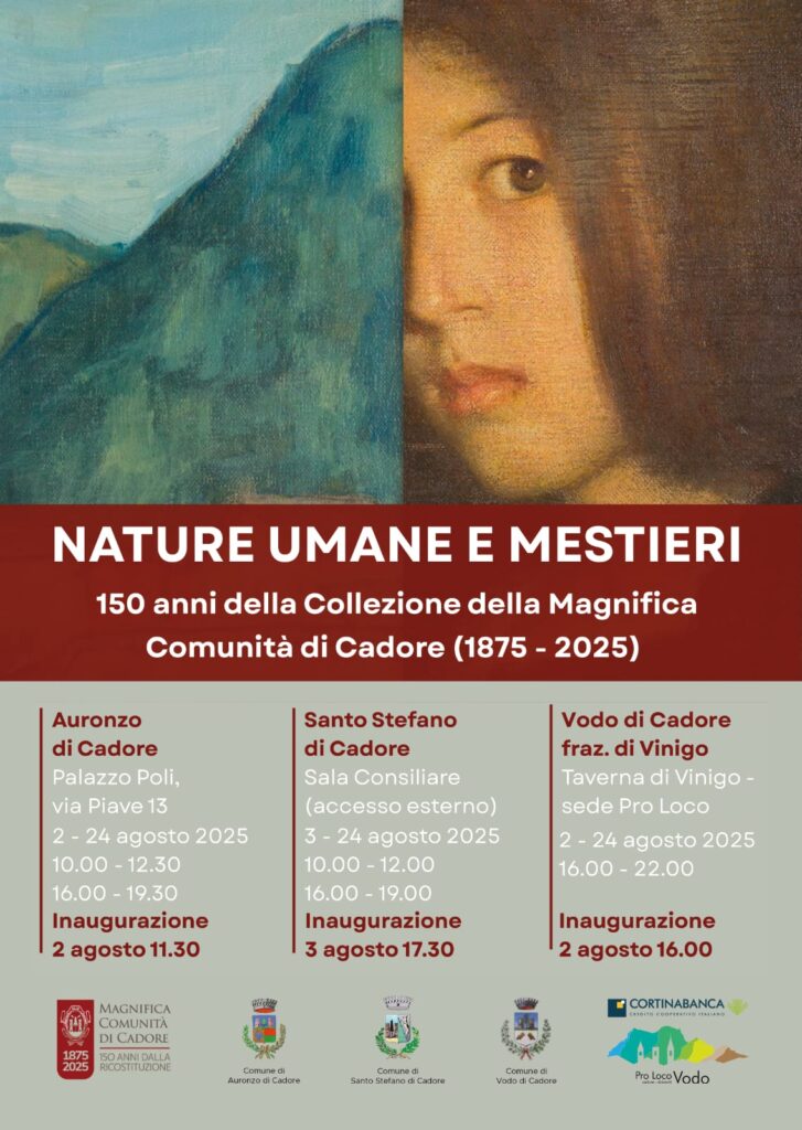 In occasione dei 150 anni dalla ricostituzione della Magnifica Comunità di Cadore, domenica 3 agosto sarà inaugurata la mostra “Nature umane e mestieri”, a cura della storica dell’arte Tullia Zanella. L’iniziativa coinvolge tre sedi espositive: Palazzo Poli ad Auronzo, la sede della Pro Loco di Vinigo e la sala consiliare di Santo Stefano di Cadore.