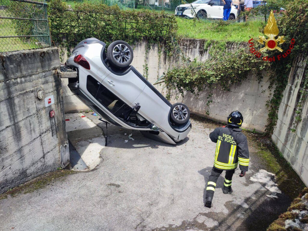 Oggi, mercoledì 6 agosto, i pompieri sono stati chiamati verso le 13 per soccorrere i passeggeri a bordo dell’auto. La rampa del garage dov’è avvenuto l’incidente si trova in via san Rocco.