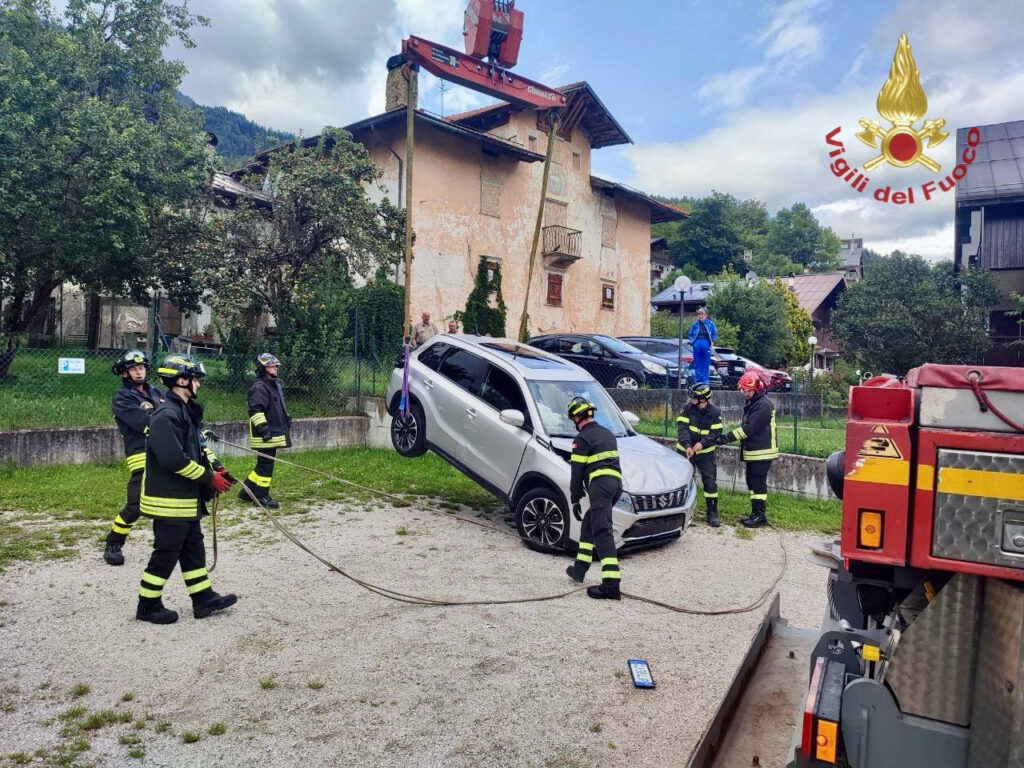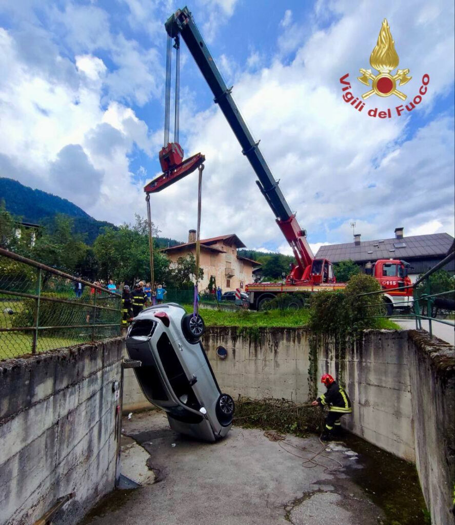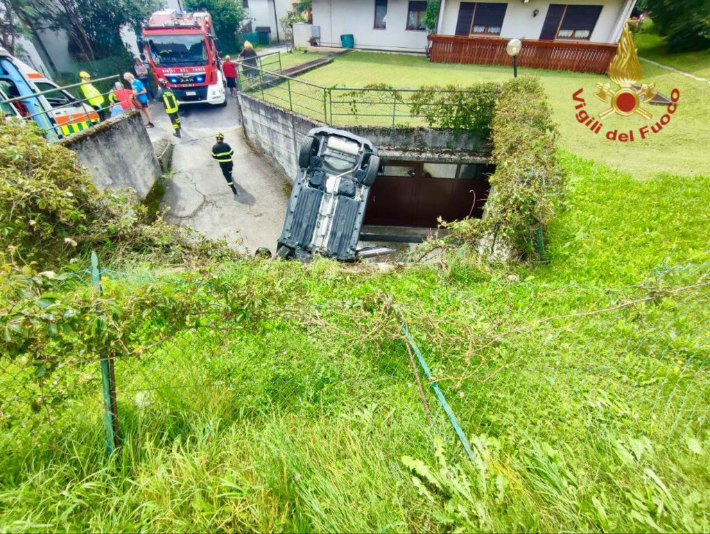 A Domegge di Cadore un’auto, sfuggita al controllo del conducente, è caduta nel vano della rampa di un garage: un bel “salto”, ferite le due persone che si trovavano all’interno. Per recuperare il mezzo sono intervenuti i Vigili del fuoco.