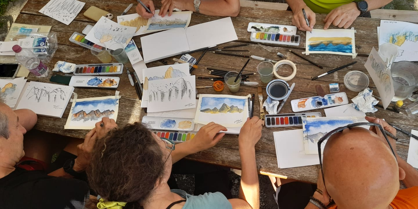 Il giorno di Ferragosto al rifugio della Schiara gli acquerelli con Marco Dall'Armi