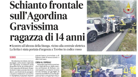 Due ragazzi e un adulto gravemente feriti in un incidente avvenuto ieri pomeriggio a La Stanga, lungo l’Agordina. Ad avere la peggio la ragazza di 14 anni portata d’urgenza a Treviso in codice rosso.