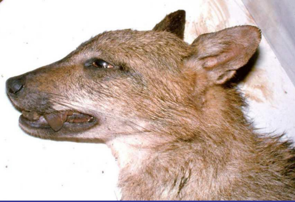L’ipotesi che si trattasse di un coiòte nordamericano (Canis latrans) fuggito da qualche area faunistica sembrava poco probabile. La riproduzione di questo animale, infatti, era dimostrata sia dallo stato delle sue mammelle ipertrofiche, certamente utilizzate per allattare, sia dalla giovane femmina di cinque mesi abbattuta nel mese di settembre 1985, ancora conservata nella collezione di un cacciatore di Terenzano, che fu presto possibile esaminare. Il suo studio ha consentito di verificare la giovanissima età dell’animale. Stava finendo di cambiare i denti da latte, cosa che in canidi selvatici di questa taglia si verifica attorno ai cinque mesi di vita. Era dunque certamente nato nella zona. Restava da accertare di quale specie si trattasse.