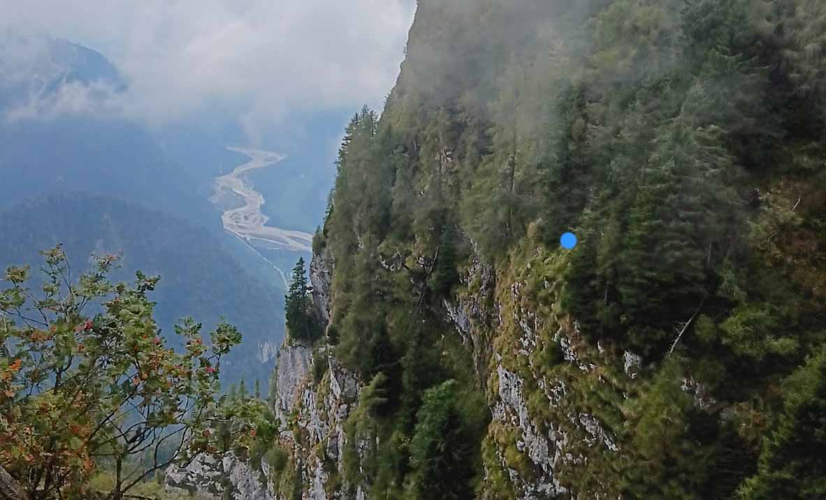 Perso il tracciato, ha continuato a scendere lungo i pendii ripidi della Costa del Castelaz in direzione Ru da Molin, fino a trovarsi sopra salti di roccia, impossibilitato a proseguire