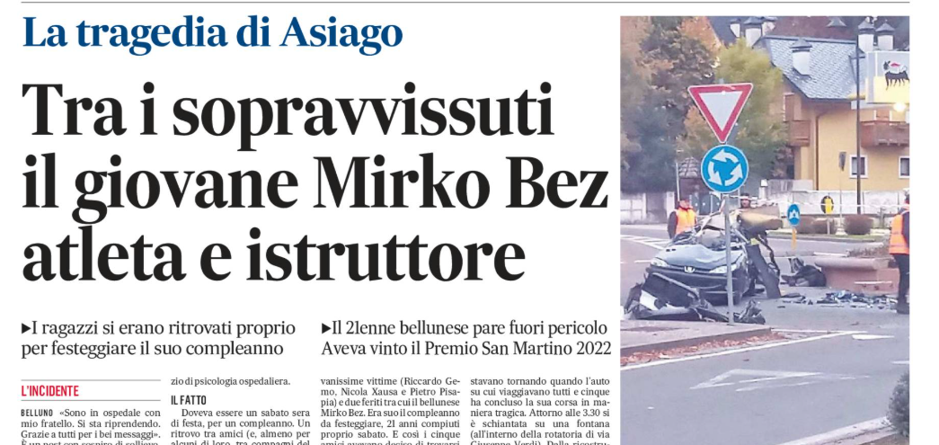 Tragedia di Asiago, tra i sopravvissuti il bellunese Mirko Bez. La rassegna di lunedì 20 ottobre ►VIDEO