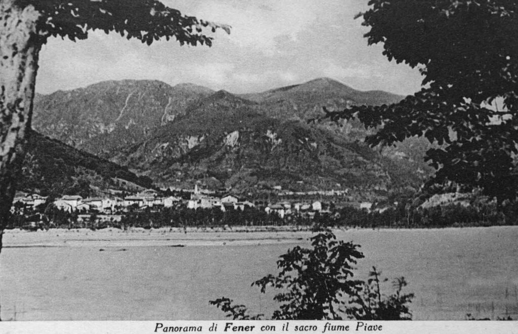 Fener visto da Segusini, al di là del fiume Piave.