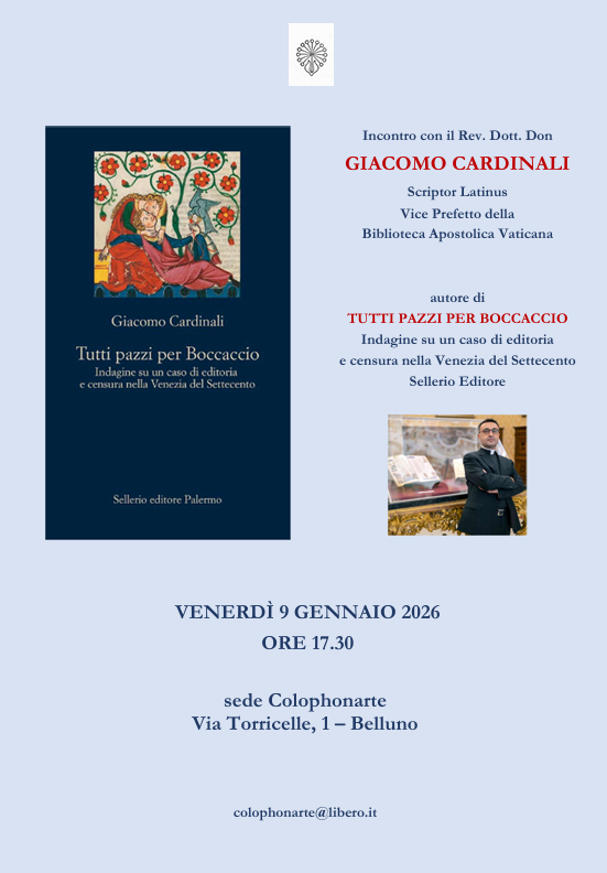 Venerdì 9 gennaio 2026, alle ore 17.30, la sede di Colophonarte ospiterà il primo incontro dell’anno, dedicato a un tema di grande interesse storico e bibliografico: la vicenda del primo facsimile mai realizzato, quello del Decameron di Giovanni Boccaccio.