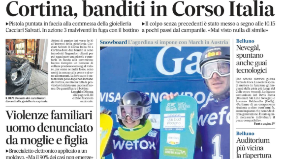 Cortina, si fingono clienti, poi la pistola: rapina da 300 mila euro in centro. La Rassegna di giovedì 15 gennaio ►VIDEO
