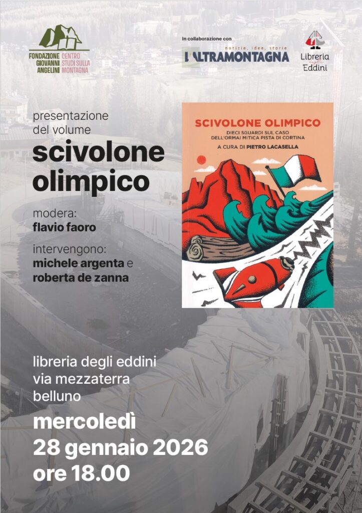 È in programma a Belluno mercoledì 28 gennaio 2026, alla ore 18.00, presso la Libreria degli Eddini in via Mezzaterra, un confronto pubblico sui grandi eventi in montagna e sulle loro conseguenze ambientali, paesaggistiche ed economiche. Al centro dell’incontro il libro «Scivolone olimpico. Dieci sguardi sul caso dell’ormai mitica pista di Cortina», instant book uscito nel 2024 che raccoglie riflessioni critiche su un’opera giudicata insostenibile già nella fase di realizzazione.