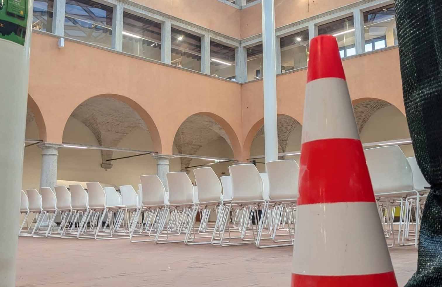 Il banco di accoglienza e prestiti è stato temporaneamente spostato al primo piano, senza modificare la fruibilità delle sale studio e del patrimonio librario e documentario