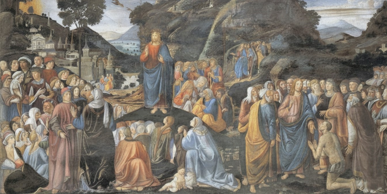 Sul Monte delle Beatitudini Gesù non lancia un ideale futuro, ma affida un’identità presente: pochi discepoli diventano sapore contro la corruzione e luce discreta per il mondo. (immagine generata con AI)