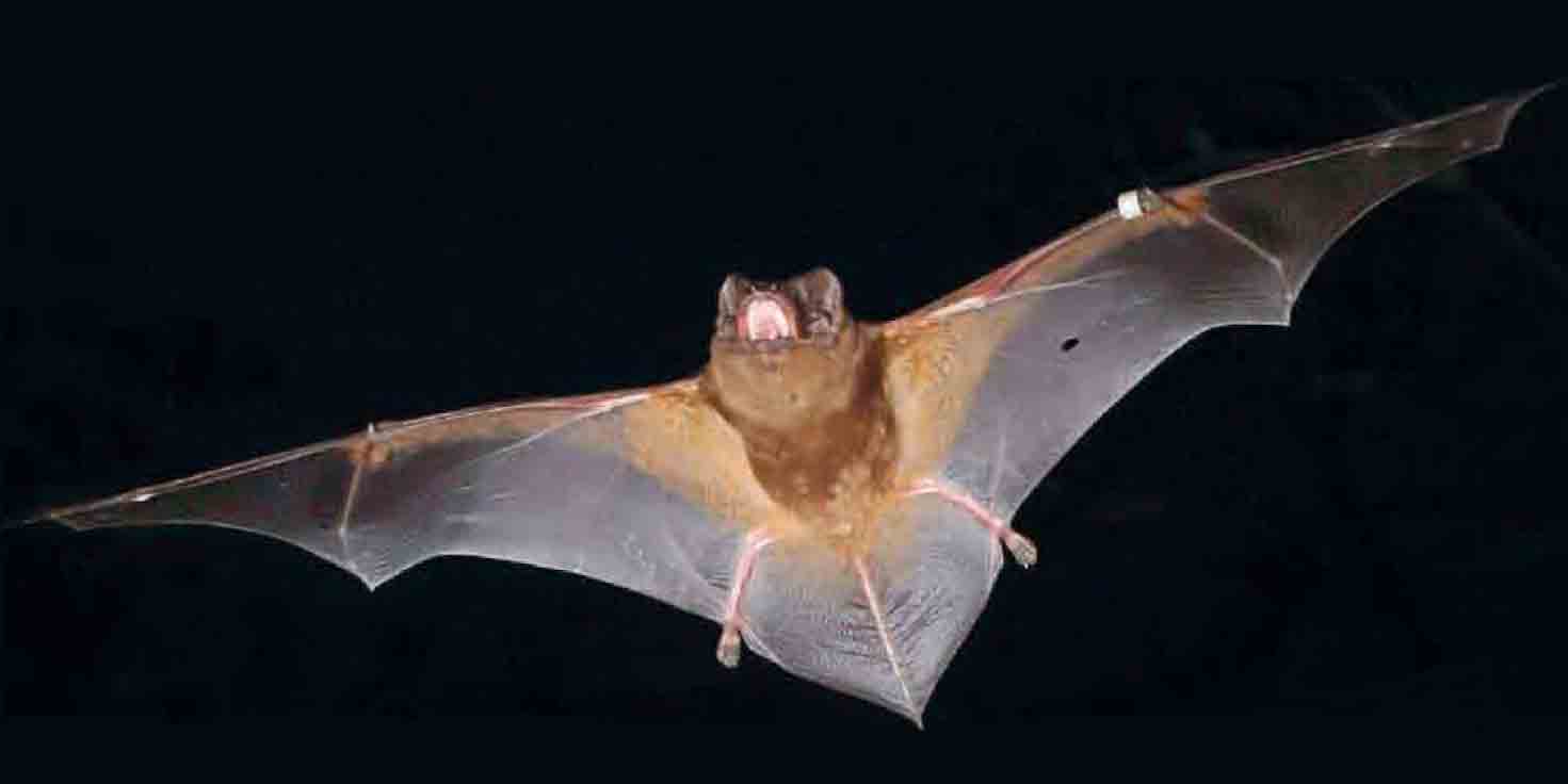 Una nottola gigante ripresa in volo. Dimora anche in Italia, a Nordest, e vive decenni. Foto J. Rydell (da Lapini & Dorigo, 2015)