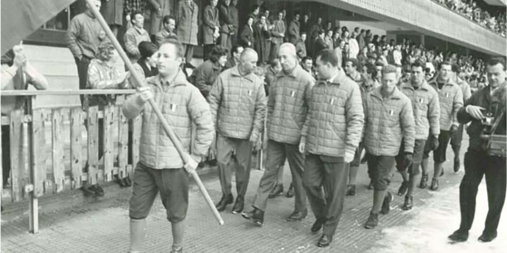 L’inno ufficiale dei Giochi fu firmato da Michal Spisak, la marcia olimpica da Giuseppe Blanc. Nella foto la sfilata degli atleti italiani nella cerimonia di inaugurazione dei giochi.